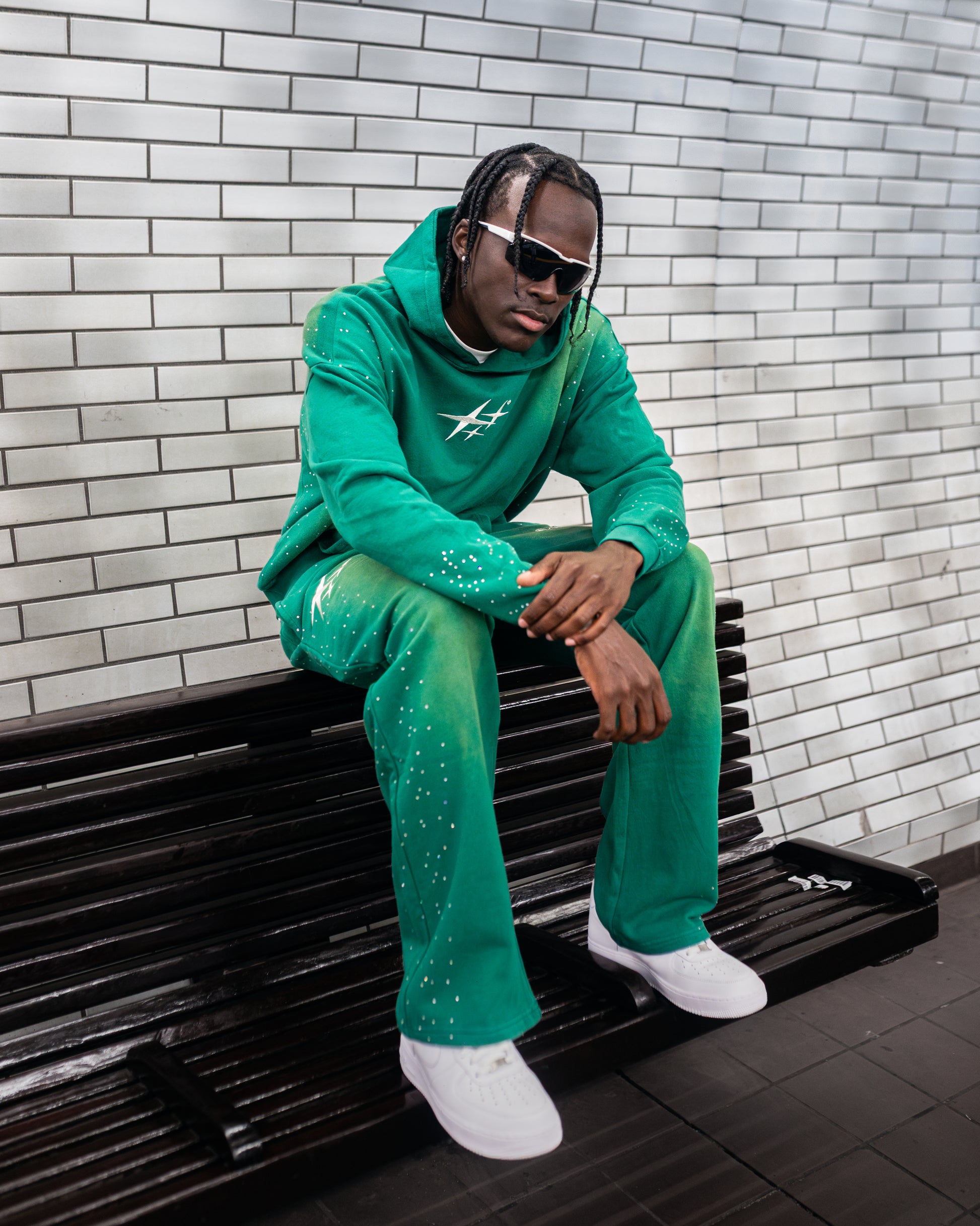 Swavorski crystals places through the sides of garments and strategically through hip to hem